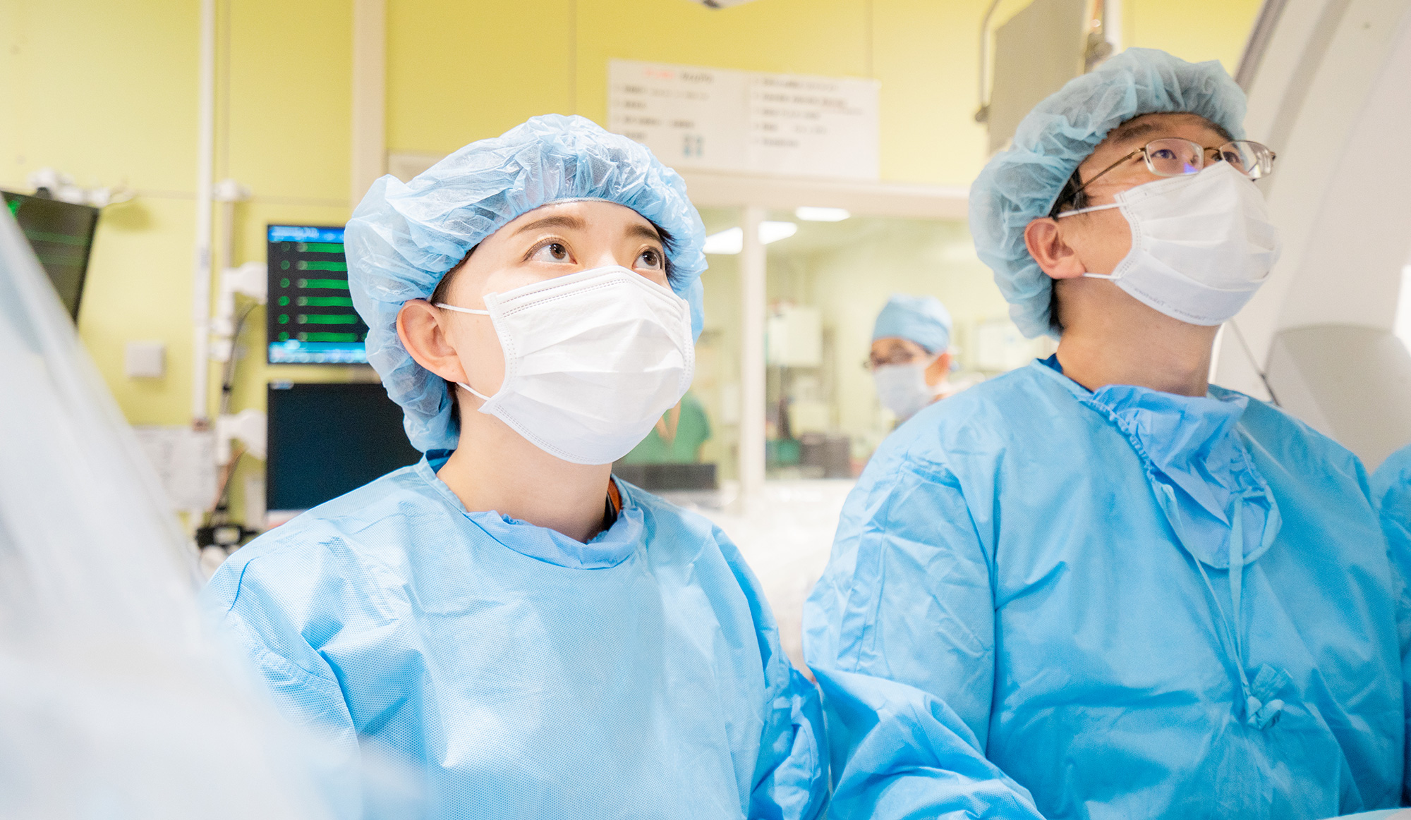 がん、心疾患、脳血管障害に対して、最先端の機器を導入し、専門チームによる質の高い治療を行っています。カテーテルによる血管内治療では、急性心筋梗塞・不整脈および脳動脈瘤等に対応しています。また、前立腺・膀胱等の泌尿器科領域、胃・結腸等の消化器領域において手術支援ロボット「ダヴィンチ」を用いた安全で低侵襲な手術を積極的に行っています。