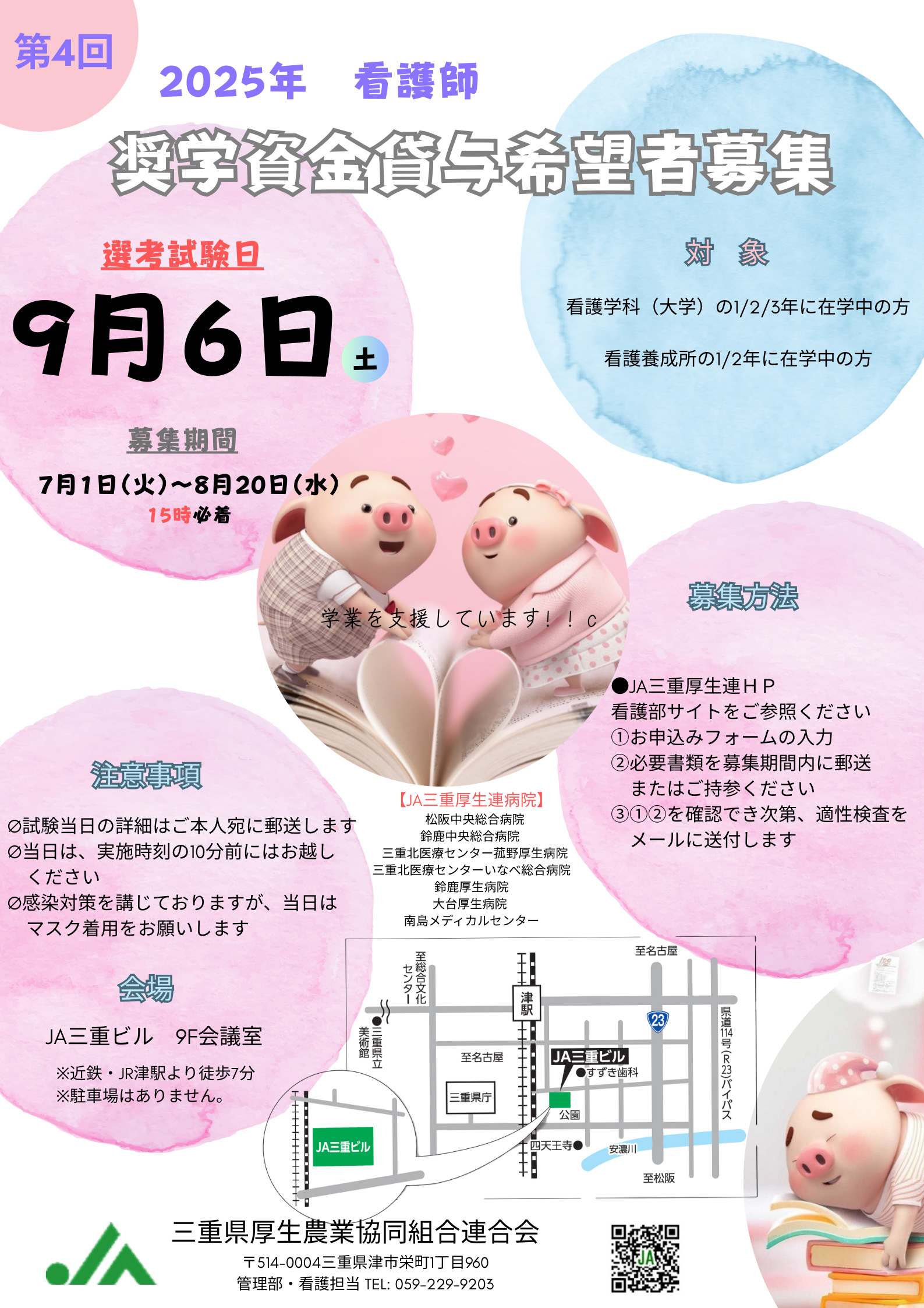 お申し込み Apply お申し込みフォーム <奨学資金お申込み> 下記フォームに必要事項を入力後、確認ボタンを押してください。 フリガナ ※必須 例)ヤマダ タロウ お名前 ※必須 例)山田 太郎 年齢 ※必須 性別 男 女 郵便番号 ※必須 現住所 ※必須 連絡先 ※ 現住所以外に連絡を希望の場合のみ記入 電話(半角)※必須 携帯電話(半角)※必須 Mail(半角)※必須 所属先 ※必須 看護系大学 看護専門学校 高等専攻科 学年 ※必須 大学3年 大学2年 大学1年 看護学校1年 看護学校2年 奨学金貸与年数 ※必須 就学期間満期(大学4年間) 就学期間満期(専門学校3年間) 就学期間満期(専攻科2年間) その他(※1年間の貸与はない) 書類郵送日 ※必須 その他内容 ※IPアドレスを記録しております。いたずら等はご遠慮ください 看護部について 教育 専門/認定看護師 先輩の声 出身校一覧 イベント 奨学金制度 採用情報 あなたの知りたいQ&A ワークスタイル 医療機関推薦